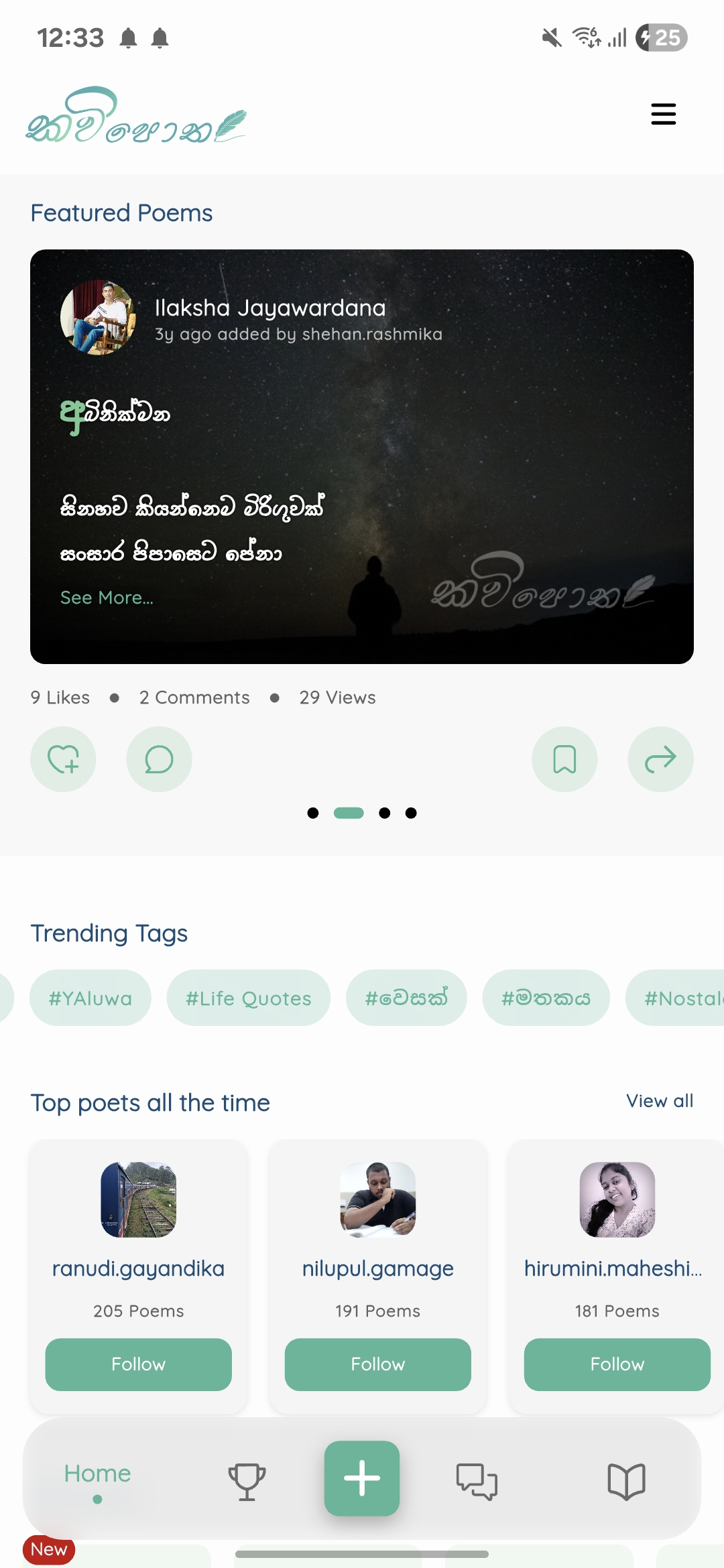 Kavi Potha is Sri Lanka's first and only mobile app dedicated entirely to Sinhala poetry. Born in 2021 with a quiet dream, it now proudly carries more than 5,000 poems from various eras and styles.