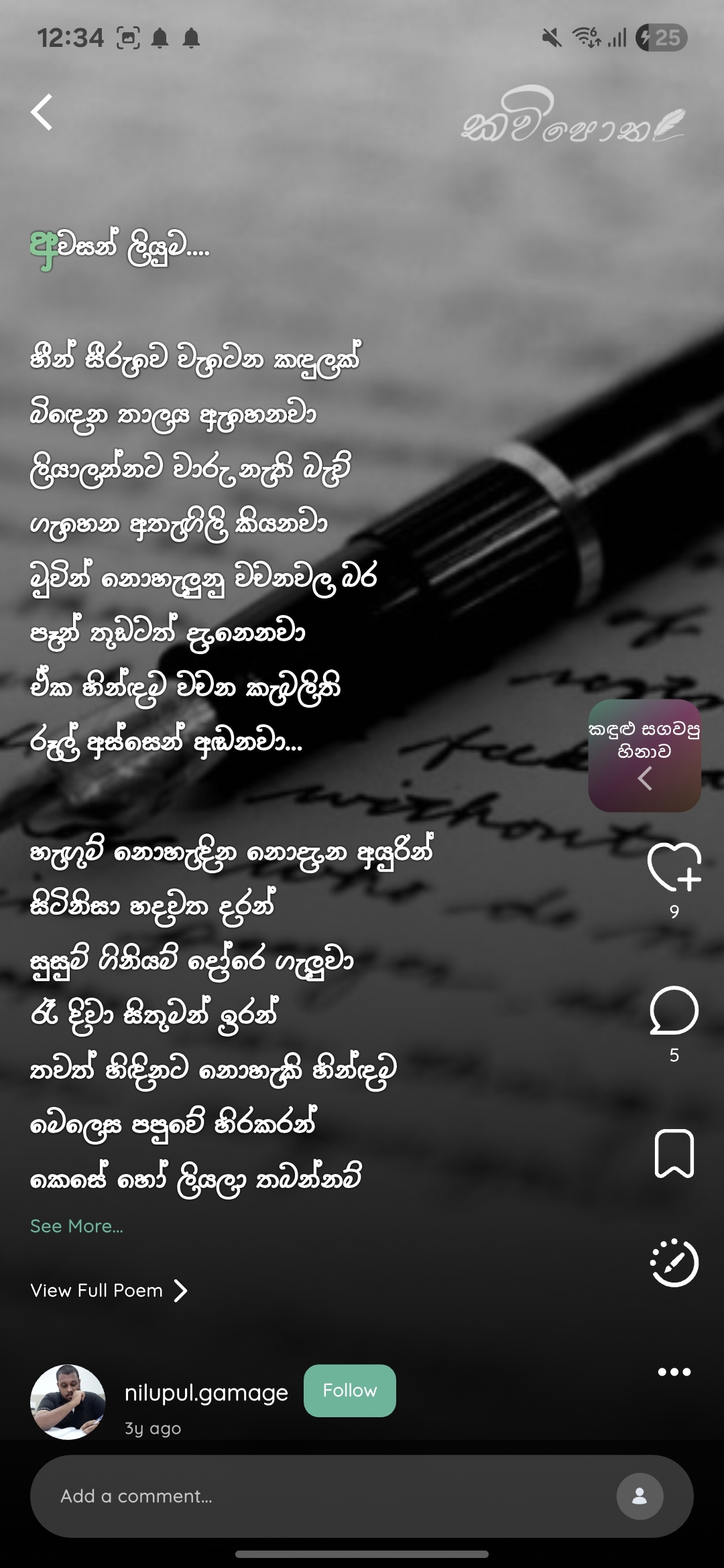 Immerse yourself in a curated collection of beautiful Sinhala poems. Read, share, and connect with the art of verse.